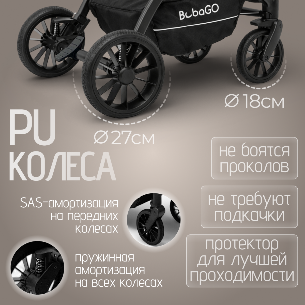 Коляска комплектуется автолюлькой BubaGO с адаптерами для установки на шасси.Это позволяет использовать автолюльку как переноску и дополнительный блок коляски — удобно в повседневных поездках и прогулках.