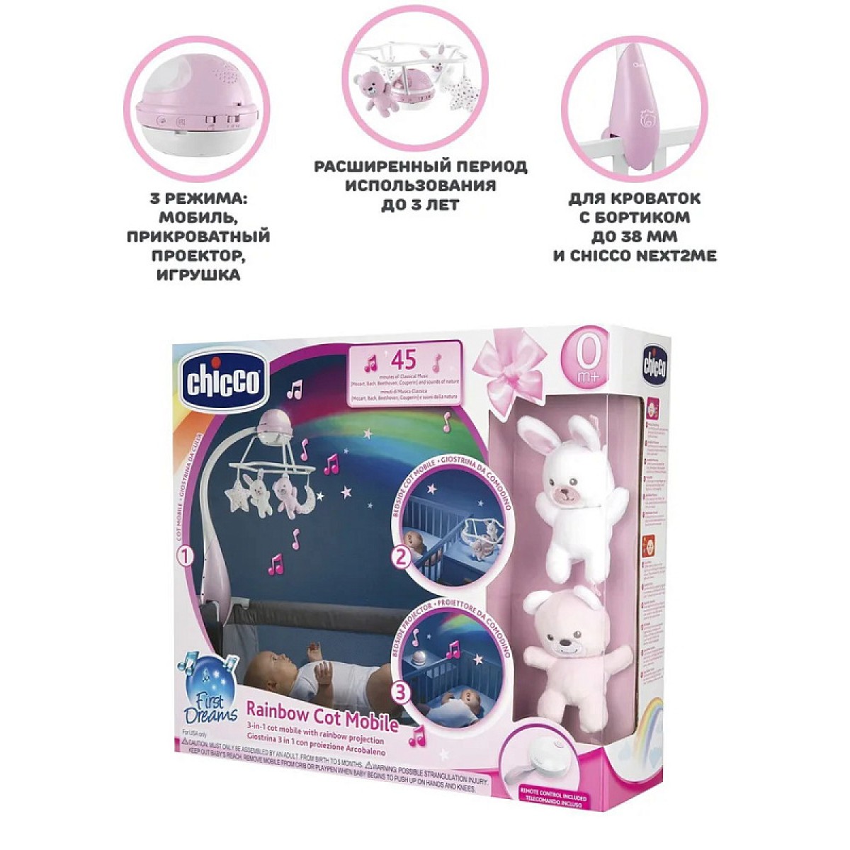 Игрушка-мобиль Chicco "Радуга" на кроватку Радуга 3-в-1 с дистанционным управлением 0+.