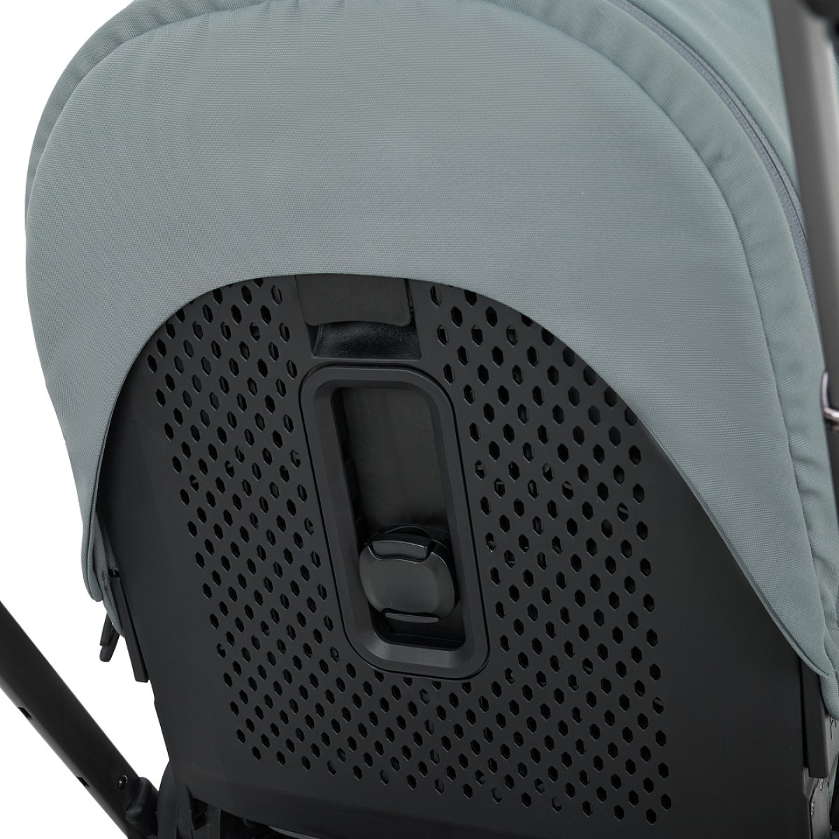 Капор прогулочного блока изменяет свою высоту, фиксируется в одном из трёх положений (разница между минимальной и максимальной высотой капа – 6 см). Кнопка-фиксатор расположена на внешней стороне спинки. Спинка выполнена из прочного гипоаллергенного пластика, с функцией проветривания. Кап оборудован дополнительной секцией под молнией, позволяющей увеличить его размер, смотровым окошком и съёмным козырьком.