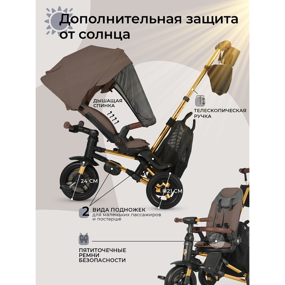 Велосипед детский трехколесный с ручкой QPlay Sprinter S Max — это настоящая находка для активных родителей! Этот трехколесный велосипед надежным спутником для ваших прогулок с малышом! Велосипед отличается современным стильным дизайном, высоким качеством материалов, а еще большим набором функций и возможностей, которые оценят малыши от 6 месяцев до 6 лет и их родители.