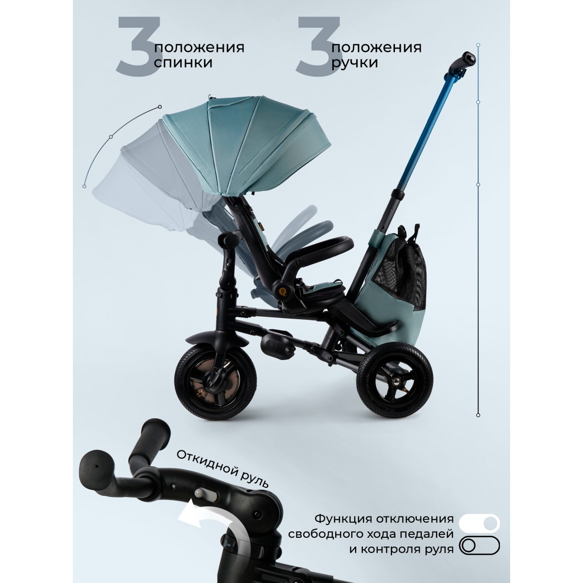 Велосипед трехколесный 6 в 1 Qplay SPRINTER MAX цвет: Mint Oxford/Graphite
