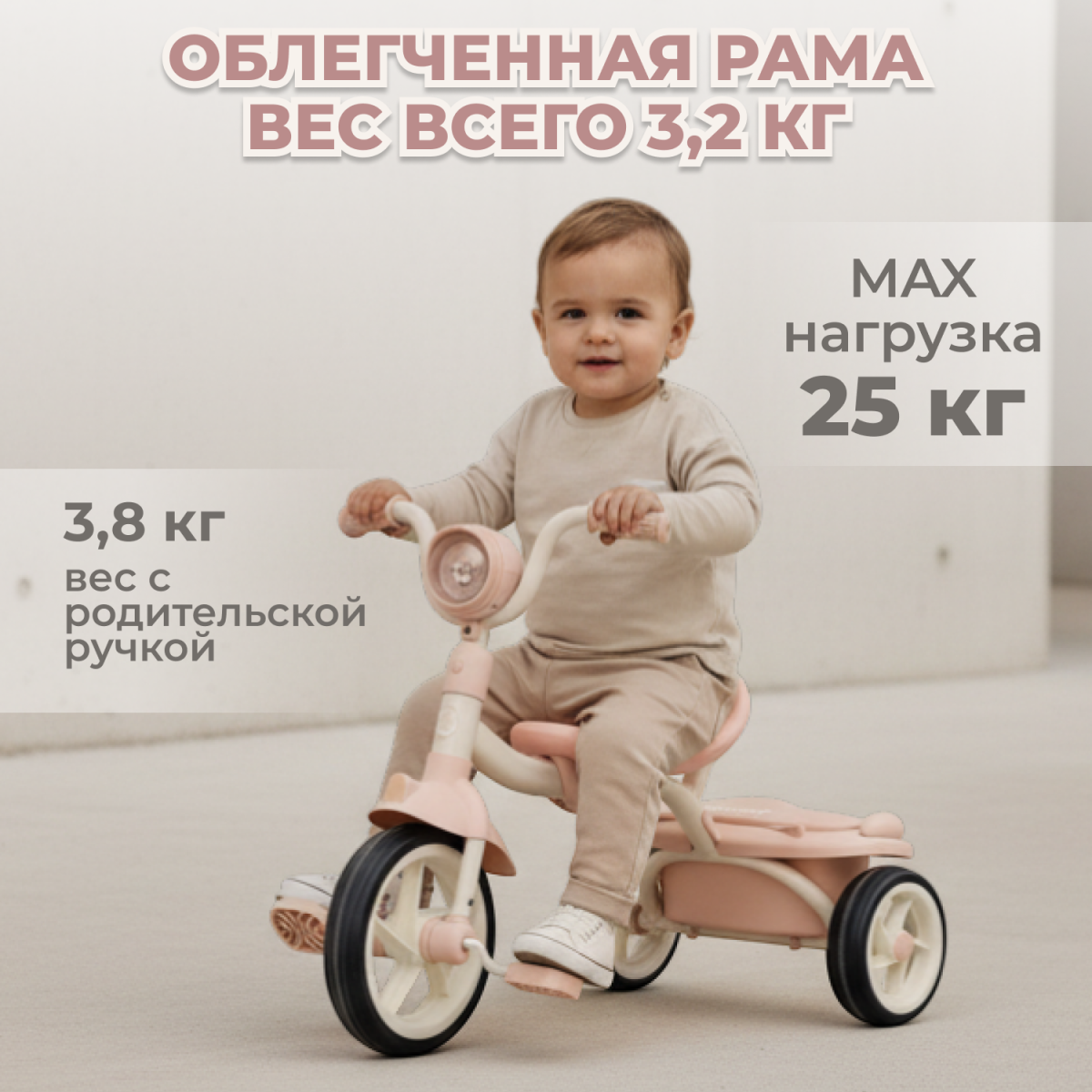 -Вес велосипеда: 3,2 кг (без ручки) / 3,8 кг (с ручкой)