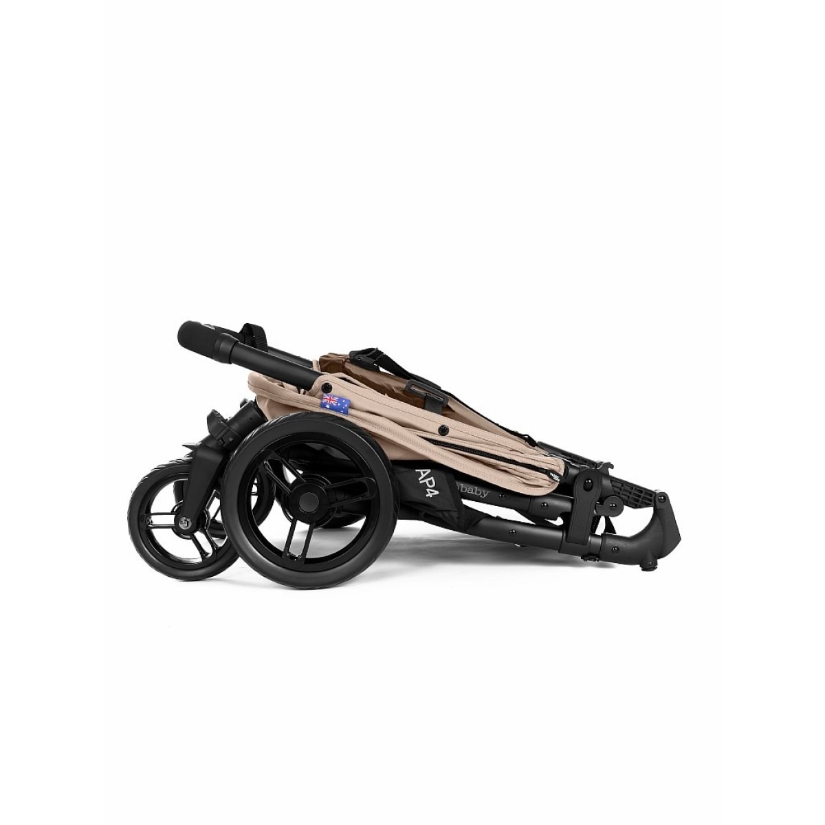 Спинка опускается в полностью горизонтальное положение, а сама коляска складывается в два клика.