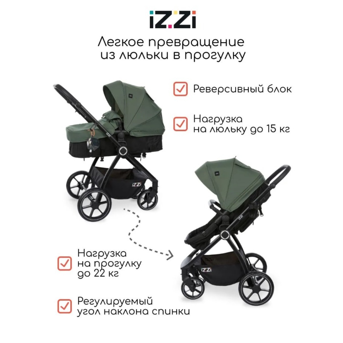 Трансформация из люльки в прогулку с реверсивным блоком осуществляется в три простых шага: