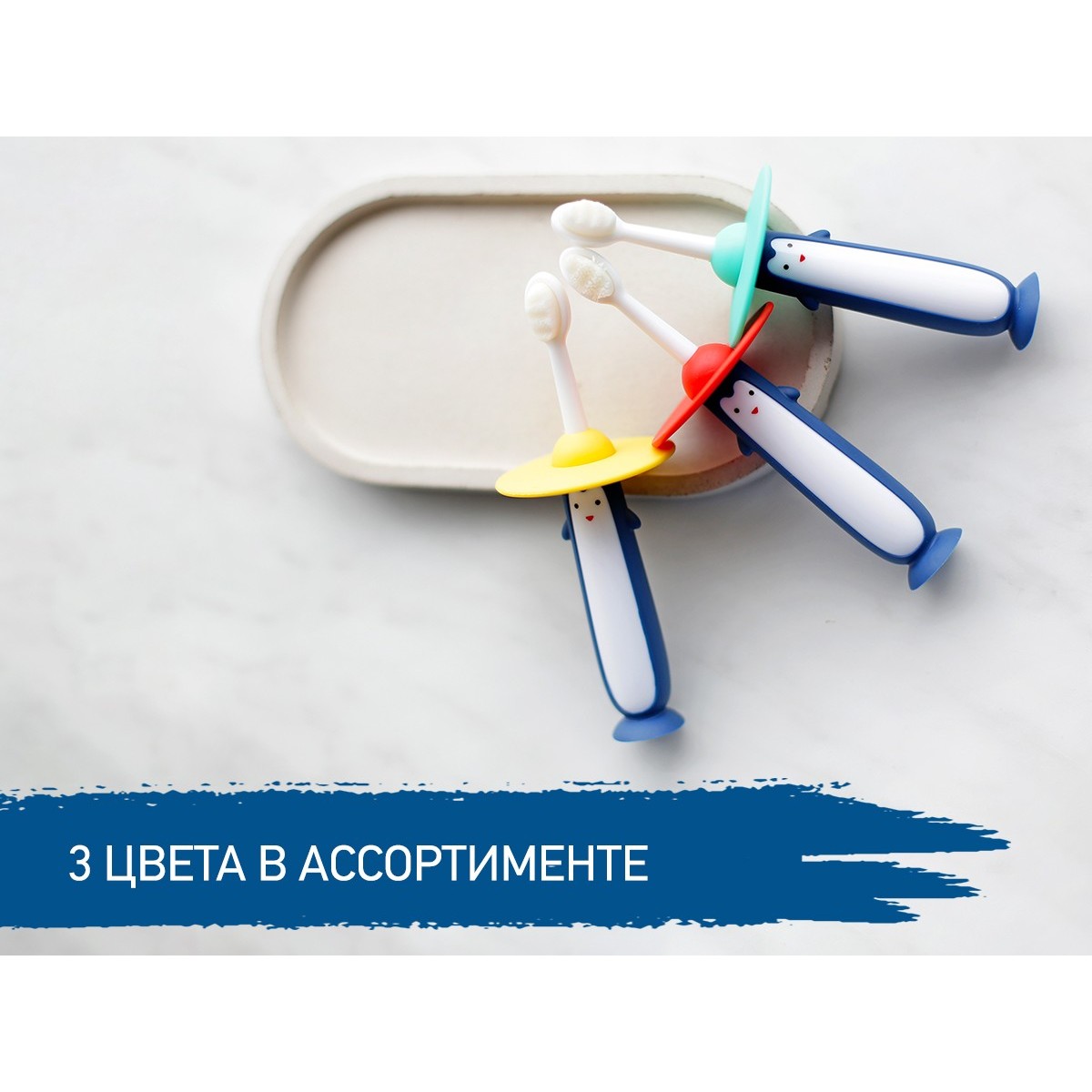 Зубные щетки PENGUIN с ультрамягкой щетиной предназначены для комфортного и безопасного ухода за первыми зубками и полостью рта малыша. Зубная щетка оснащена небольшой головкой и мягкой щетиной, которая бережно удаляет налет с детских зубов, а также аккуратно массирует десны. Прорезиненная ручка в виде пингвина развлекает ребенка, а шляпа-сомбреро выполняет функцию ограничителя, защищая малыша от заглатывания щетки. Присоска обеспечивает щетке вертикальную устойчивость и гигиеничное использование.