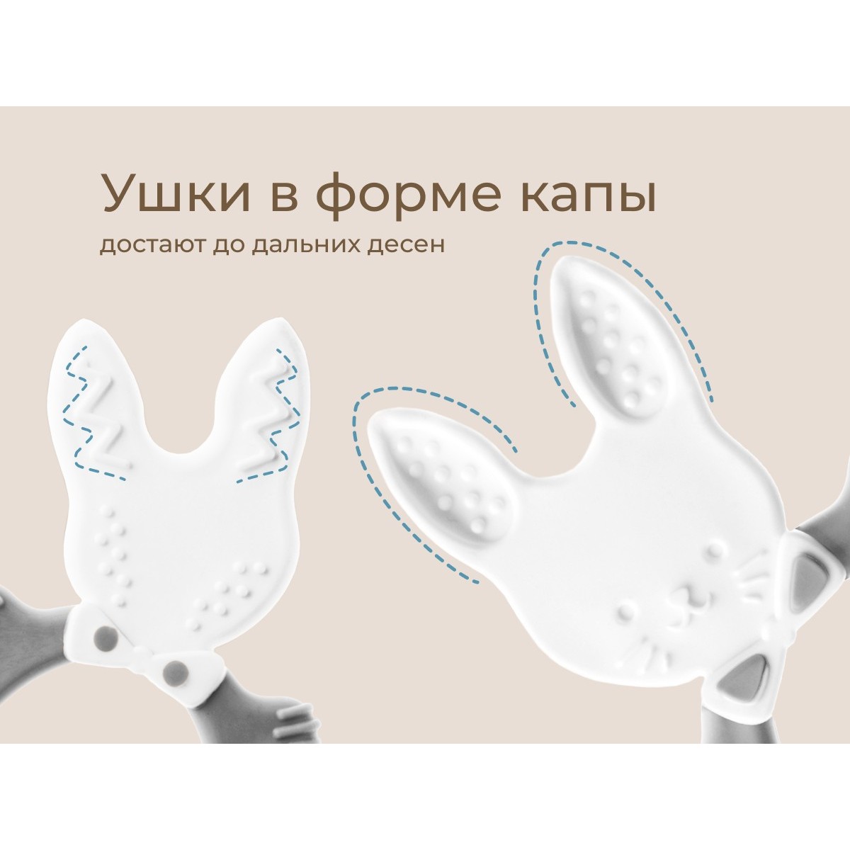Прорезыватель для зубов BUNNY TEETHER подходит для всех стадий прорезывания зубов у малышей. Он состоит из элементов различной степени жесткости, что позволяет малышу использовать на протяжении всего времени прорезывания. На начальном этапе, когда у малыша раздражены десны, он может чесать их о мягкую рельефную голову зайчика. На завершающем этапе малыш сможет грызть более твердое тело и твердые морковки для лучшего эффекта. BUNNY TEETHER пригодится даже при прорезывания жевательных зубов, потому что ушки зайца по форме похожи на капу, что позволит малышу снять зуд с самых дальних десен. Прорезыватель сделан из безопасных гипоаллергенных материалов (термоэластопласта и полипропилена), так что ребенок может грызть его целыми днями. Еще одна отличительная особенность BUNNY TEETHER это тело, сделанное в форме кольца, которое малыш сможет удобно держать. В ассортименте ROXY-KIDS прорезыватели BUNNY TEETHER представлены в нескольких цветах. Соответствует стандартам безопасности товаров для детей.
