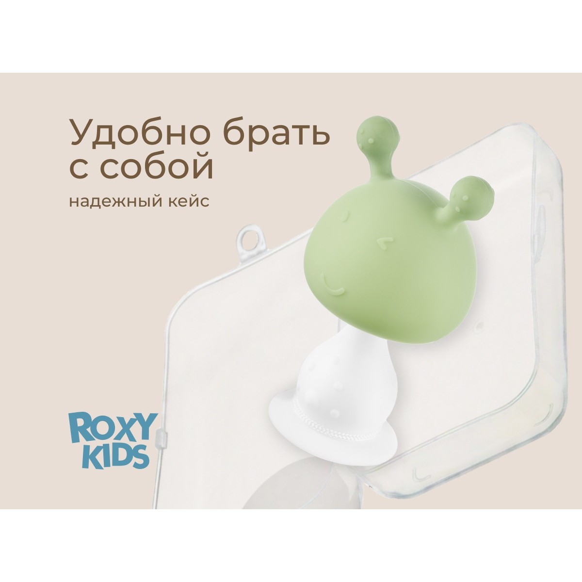 Прорезыватель для зубов MUSHROOM в форме грибочка безопасно массирует десны двумя ушками разной степени жесткости и снимает неприятные ощущения во время прорезывания зубов. Элементы в форме соска напоминают малышу мамину грудь. Кулачок малыша полностью помещается внутри полусферы грибочка. Ребенок крепко держит прорезыватель в кулачке и отучается от сосания пальца. Благодаря анатомической форме прорезыватель подходит для новорожденных и может выполнять функцию соски. Использование прорезывателя успокаивает малыша, развивает координацию и моторику рук, мелодичная погремушка внутри привлекает внимание и развлекает ребенка. С помощью присоски прорезыватель можно установить на столик или детский стульчик. В комплект входит держатель с надежной запатентованной клипсой, поэтому прорезыватель не упадет и не потеряется. Один конец держателя прикрепляется к прорезывателю, а второй при помощи специальной клипсы пристегивается к одежде ребенка. Держатель выполнен из двух слоев полиэстера, прочно сшитых вместе, поэтому он не износится и не порвется.