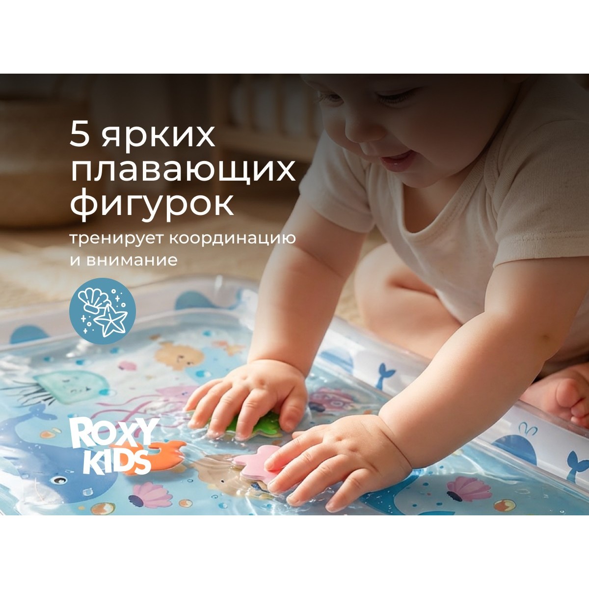 Водный коврик предназначен для развития малышей с первых месяцев жизни. Надувной бортик по краям коврика создает безопасное и уютное место для игр, где ребенок тренирует мелкую моторику и открывает новые сенсорные ощущения.