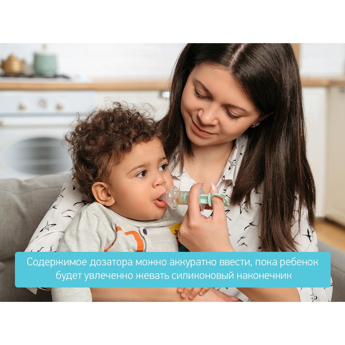 Содержимое можно аккуратно ввести, пока ребенок будет увлеченно жевать силиконовый наконечник.